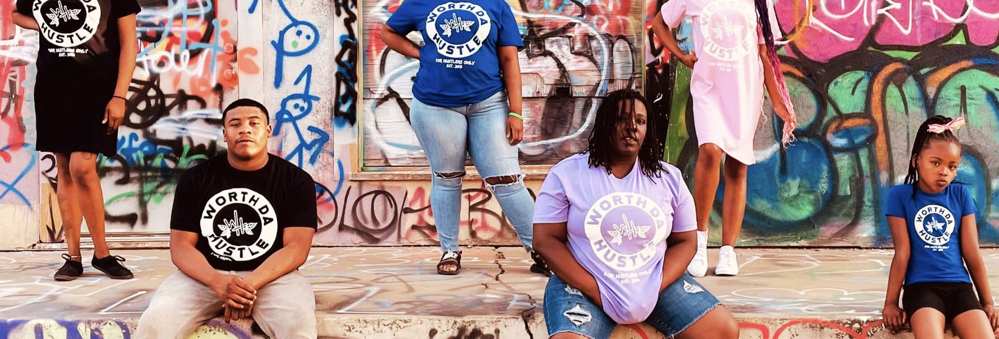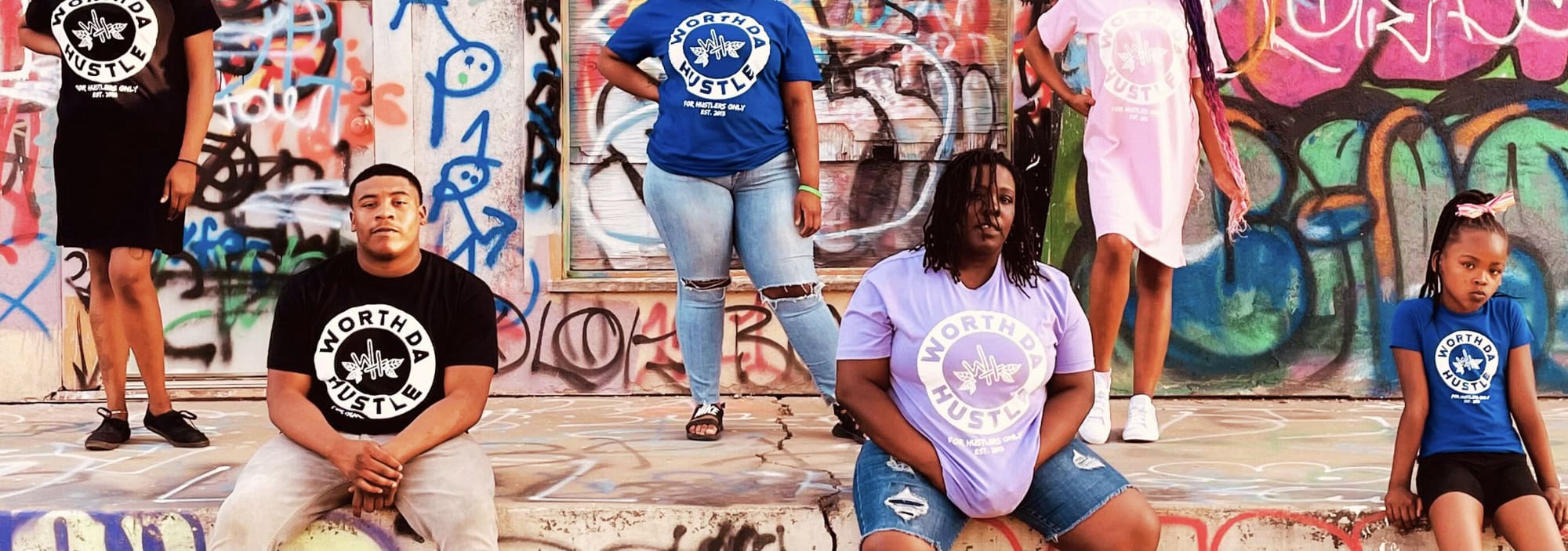 Worth Da Hustle. Founded in 2013. We didnt sell our first shirt until 2016 due to us still been in the streets. In 2014 Davi was caught in a correctional facility with crack cocaine so, they ended up going on the run for 8 years. Even wrote a book about the exprience.